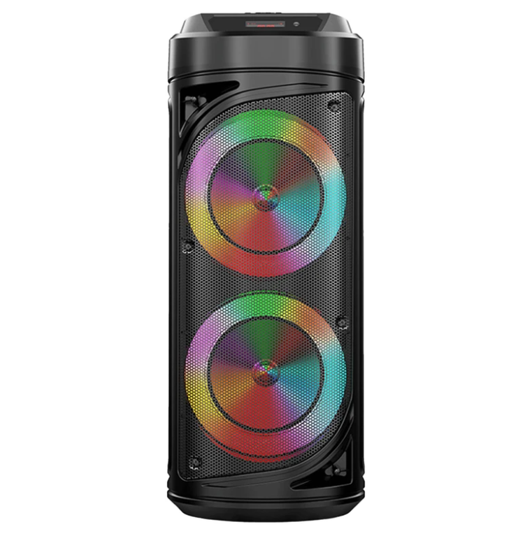 نگران تمام شدن شارژ وسط مهمانی نباشید؛ باتری ۳۰۰۰ میلیآمپری این دستگاه تا ساعتها شما را همراهی میکند و حتی در صورت نیاز میتوانید آن را به پاوربانک متصل کنید تا ۴۸ ساعت پخش مداوم داشته باشید! از نظر اتصالات هم دستتان حسابی باز است: بلوتوث، فلش مموری، کارت حافظه، کابل AUX و رادیو FM همه در دسترس هستند. اما گل سرسبد ویژگیها، قابلیت TWS است؛ اگر دو عدد از این اسپیکر داشته باشید، میتوانید آنها را بیسیم به هم وصل کنید و از صدای استریوی دوکاناله و فوقالعاده فراگیر لذت ببرید.