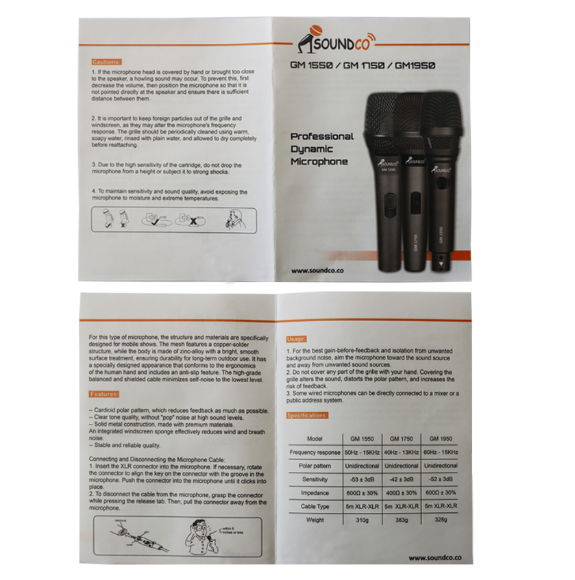 الگوی قطبی این میکروفن از نوع Unidirectional (یکطرفه) است؛ این یعنی GM1750 فقط روی صدای شما تمرکز میکند و صداهای محیطی و مزاحم را تا حد زیادی نادیده میگیرد. همراه این محصول، یک کابل ۵ متری حرفهای XLR به XLR با کیفیت عالی، یک کیف چرمی زیبا و گیره اتصال قرار دارد تا شما از همان لحظه باز کردن جعبه، آماده اجرا باشید. اگر به دنبال ترکیبی از دوام، زیبایی و کیفیت صدای حرفهای هستید، پیشنهاد ما در احمدی مارکت به شما، بدون شک این مدل از برند خوشنام ساندکو است.